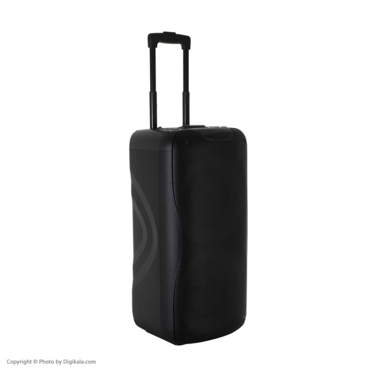 اسپیکر چمدانی هیسکا مدل 1009 با طراحی چمدانی، کاملاً قابل حمل است و برای جابجایی راحت به چرخهای مخصوص مجهز شده است.